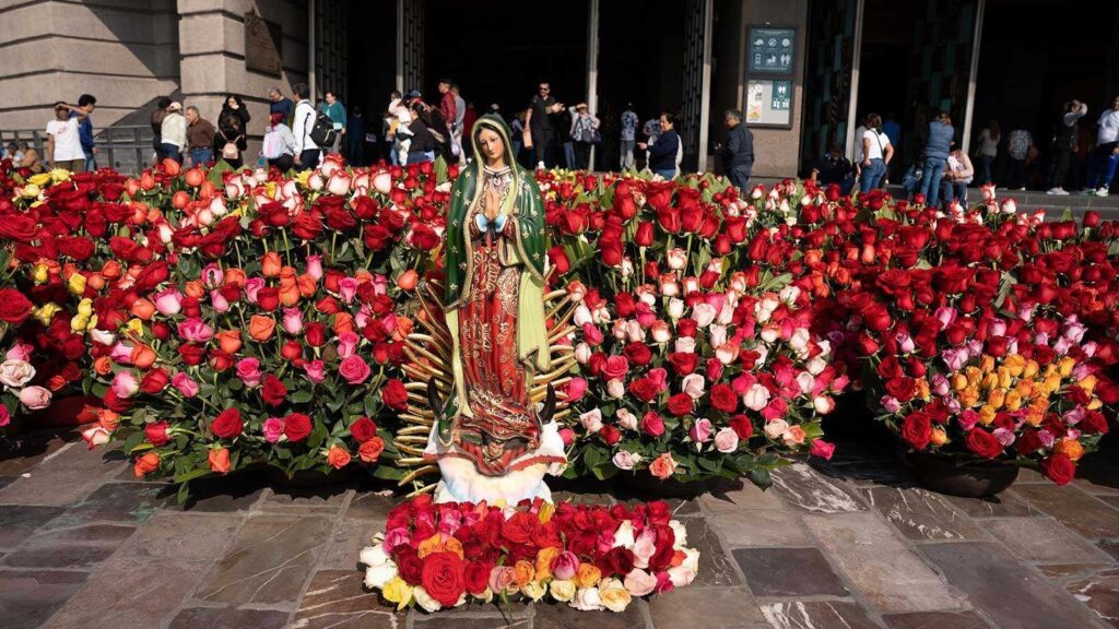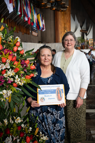 Once all 121 ANF arrangements (including 2 SANOL arrangements) are ready, Dona Ara’s team of family and friends carries them and stages them in front of the shrine within sight of Our Lady’s image. As the thousands of multi-coloured roses arrived, pilgrims from all over Mexico and the world gathered around to admire them. Many pilgrims came to ask who was presenting such a tribute to the Virgin. ANF supporter Felipe Barandiaran, overheard several children asking their mother, “What is all this? What is going on?” Without missing a beat, the mother replied, “They are roses, roses for the Virgin to console her because roses symbolize life. Now, hurry up, we have to go.” It was as if the mother did not even have to think about it, she just knew what we were doing and understood its importance. One lady was so moved by what we were doing that she came up and kissed us on both cheeks!