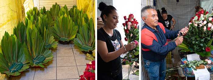 First, Dona Ara gets 121 terracotta vessels and fills them with floral oasis. Then her team of about twenty relatives gathers palm branches and arranges them in each vessel as a background for the roses. Over a period of three days, the team painstakingly inspects each rose and arranges approximately ten dozen roses in each vessel. They remove all the thorns from the stems, pick off any imperfect petals and cut the base of each stem at a precise angle so that they last as long as possible.
