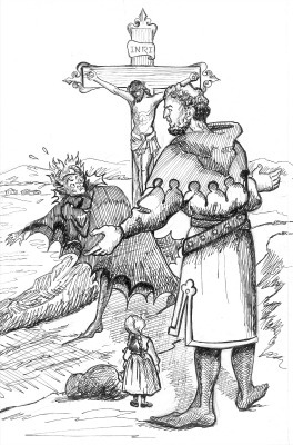 The king smiled sadly. “Ah, Offero,” he said, “the mightiest monarch of the earth must fear satan. For he is more powerful than any king among us; and only that sign of the cross can save us from him.”