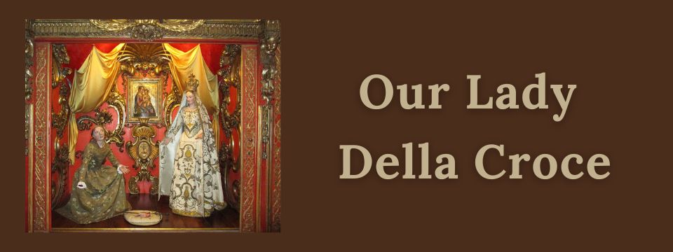 Many other sick and infirm came also and were cured. The people erected a small chapel on the spot and placed in it a plaster image of Our Lady. More favours followed; many offerings were made by the faithful and in a few years a fitting sanctuary to the Madonna was completed by 1500. Later a fine new statue of Mary was enshrined in the Sanctuary and in 1873 Our Lady Della Croce was crowned with a golden crown by order of the Vatican.
