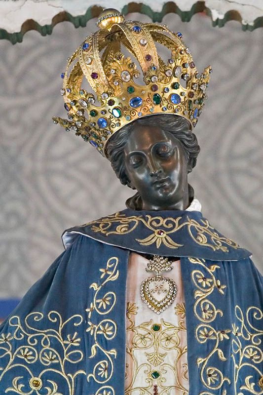 The statue donated by the sodality became known as Our Lady of Africa, and the statue venerated in Algiers today is this same bronze image, very dark in colour, but with European features. Pilgrims came to venerate the image where the lame, the blind, and the crippled were miraculously healed, and sailors came also to beg for protection for their long and perilous voyages. The walls of the basilica are now covered with votive offerings testifying to the assistance the faithful had received from the Mother of Mercy.