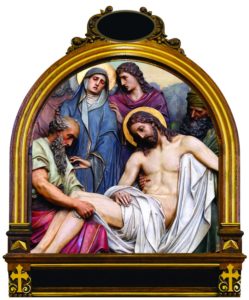Consider how, after the death of our Lord, two of His disciples, Joseph and Nicodemus, took Him down from the cross, and placed Him in the arms of His afflicted Mother, who received Him with unutterable tenderness, and pressed Him to her bosom.
