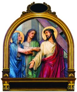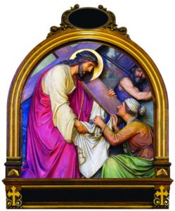 R: Because by thy Holy Cross, Thou hast redeemed the world. Consider how the holy woman named Veronica, seeing Jesus so afflicted, and His face bathed in sweat and blood, presented Him with a towel, with which He wiped His adorable face, leaving on it the impression of His holy countenance.