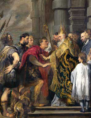Walking into an angry assembly which had convened in a church, Governor Ambrose began to appeal that they settle things more peaceably. Suddenly a voice shouted, “Ambrose for bishop!” and the cry was taken up by the crowd.