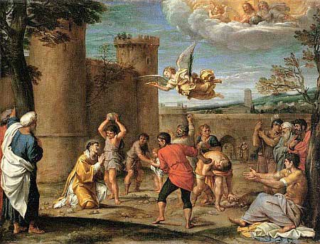 Stephen spoke with such wisdom and fire that his listeners could not resist his words. Thus a plot was begun in certain synagogues against him. At first, they tried to debate with the young deacon but could not withstand his inspired logic. Wanting to silence him by any means, they then conspired to put him to death.