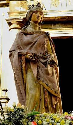 After her husband’s death, Elizabeth took the habit of a Franciscan Tertiary and retired near a convent of Poor Clares which she had built, dedicating herself to the sick and the poor.