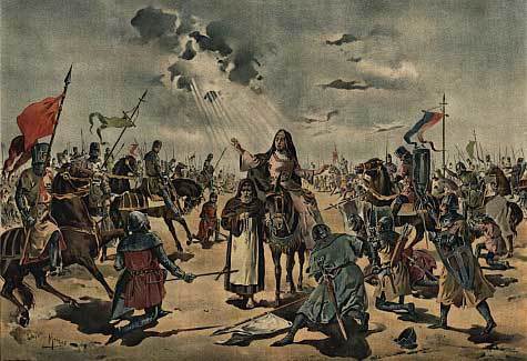 A constant peacemaker, the holy queen ironed out many a conflict between bellicose rulers and nobles. Twice she reconciled her husband and son, on one occasion, even interposing her person between them in the battlefield.