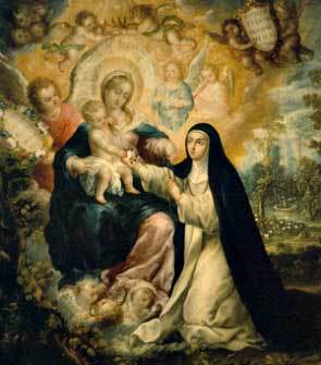 Assailed by tremendous temptations against the Faith and the virtue of purity, which caused her excruciating agony of mind and desolation of soul, she multiplied her mortifications and prayers, and with her confessor’s approval, took a vow of virginity.
