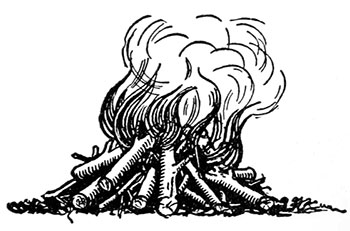 “But then the fire was nearly burnt out. There were no logs or branches left, only a big heap of live coals; and the stranger had neither spade nor shovel, wherein he could carry the red-hot coals.